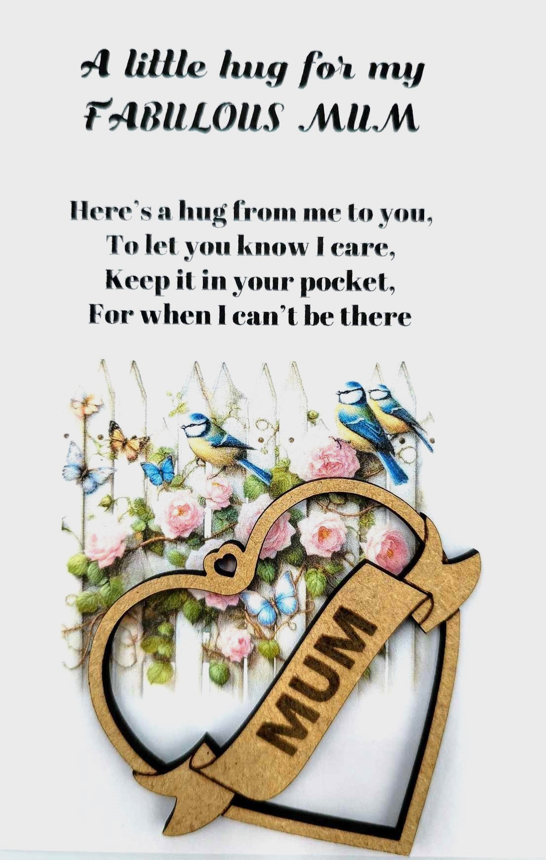 A hug card for my Fabulous Mum , Gran , Nan Cards and keepsake with an engraved heart keepsake