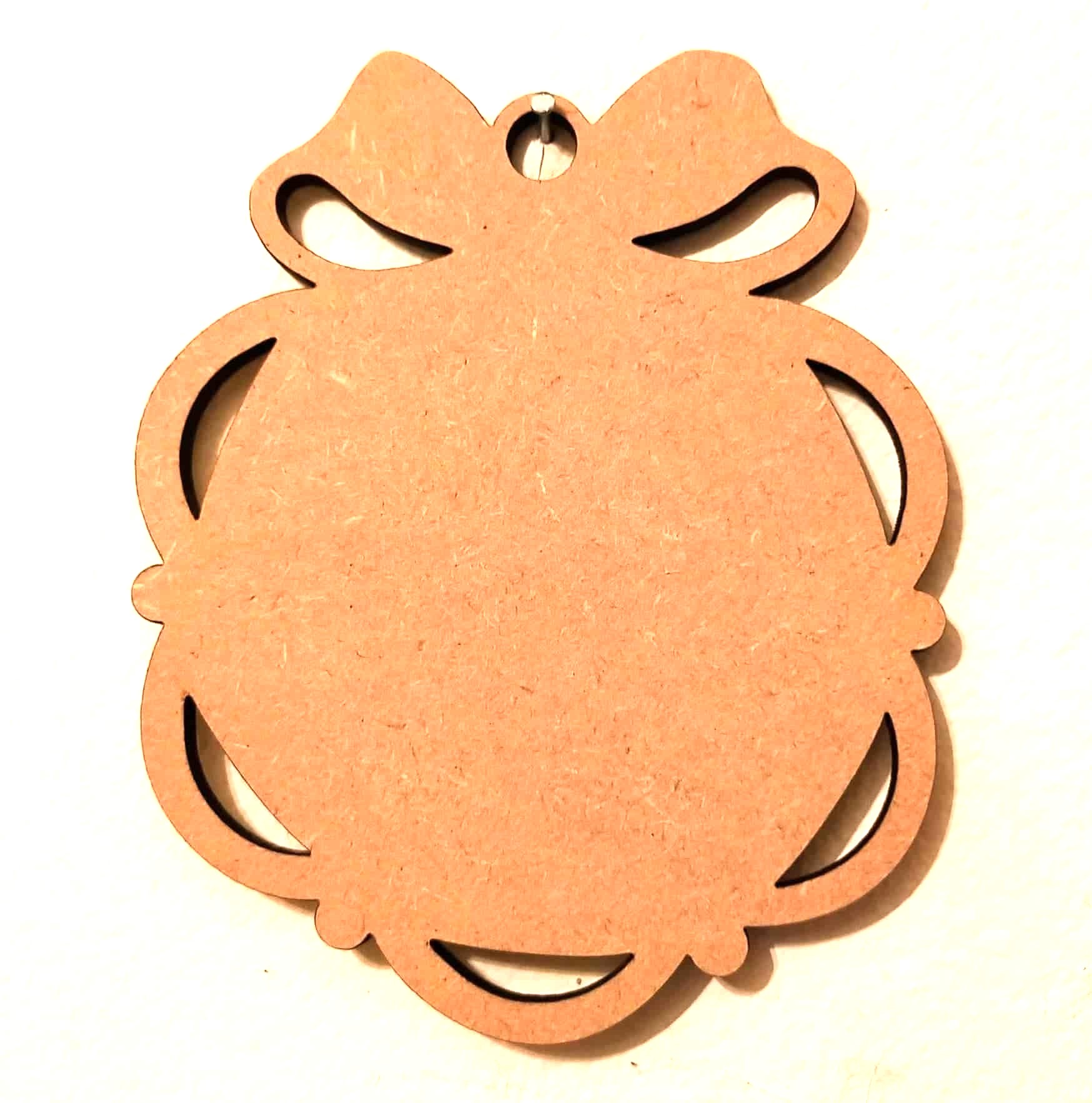 Elevate your seasonal crafting with our Fancy Hanging Bauble. This 4mm thick MDF blank features a beautiful scrolled frame and a large circular center, making it an ideal canvas for decoupage, hand-painting, or vinyl lettering. Its generous size ensures it will stand out as a centerpiece on any Christmas tree.