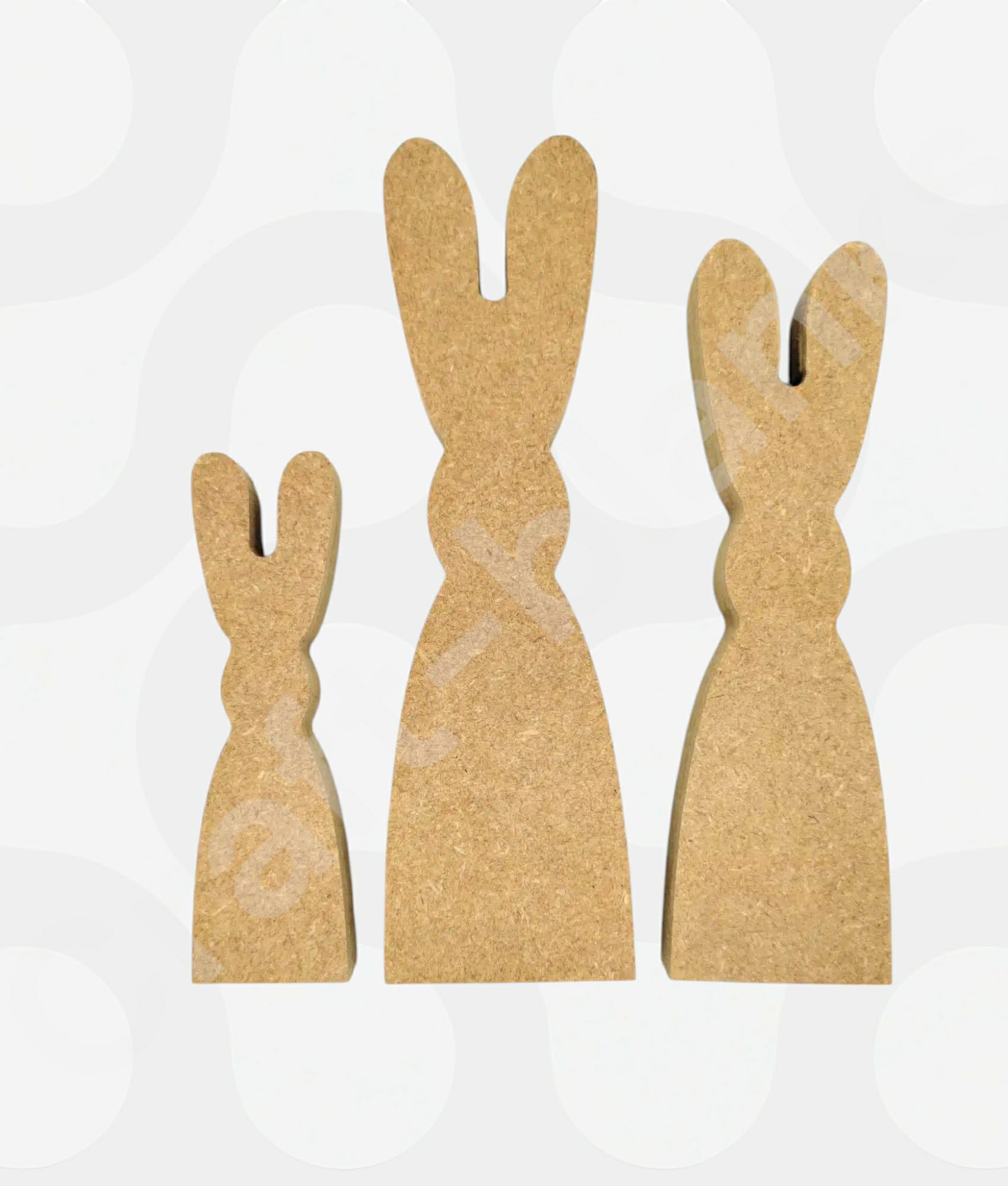 Quality is essential when creating freestanding decor that needs to look boutique-style and remain perfectly balanced on a flat surface. Specifically, we have handcrafted every bunny in this set from premium 18mm thick moisture resistant (MR) MDF. This thickness is far superior to standard 3mm or 6mm blanks because it provides the necessary weight and depth for the figures to stand independently without extra bases or supports. Consequently, you can achieve a glass-smooth finish with far fewer coats of primer or paint, as MR MDF is engineered for low-absorption. Additionally, because the material is moisture resistant, your finished pieces will maintain their structural integrity even in various home environments.
