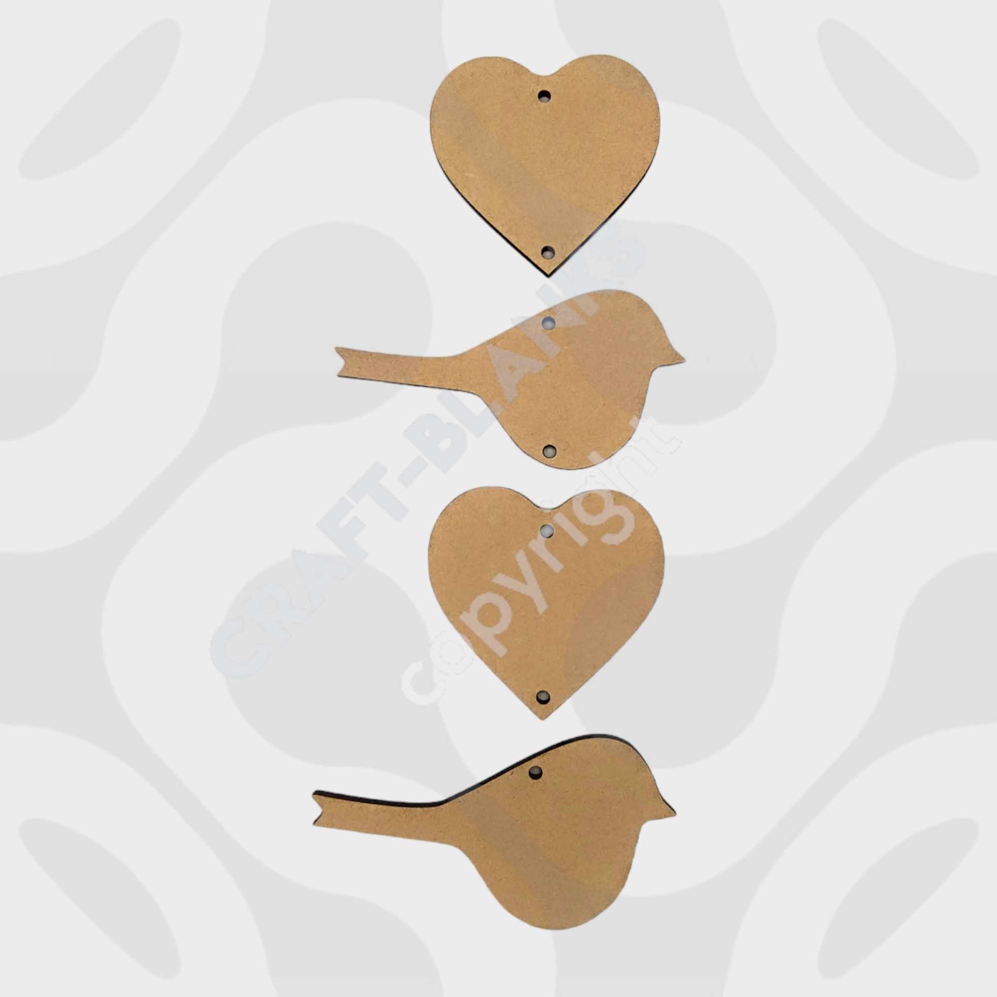 Each set is 2 x birds   2 x hearts with hanging holes to link together