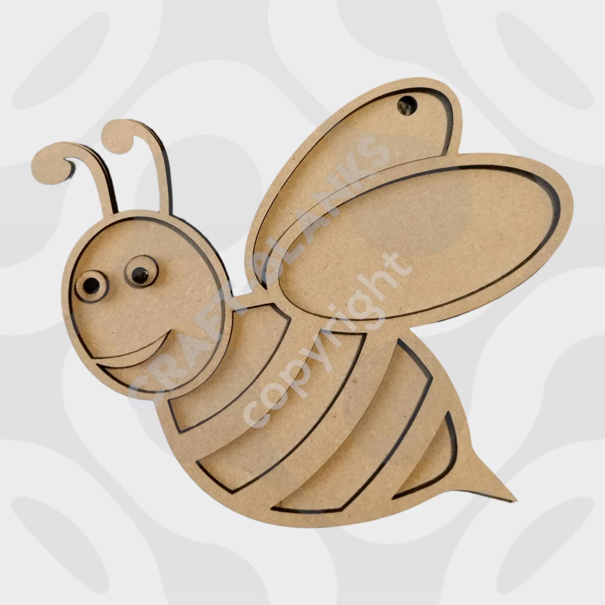Our Happy Bumblebee 2-Piece Plaque is a fantastic choice for anyone who loves nature-inspired crafts. The friendly silhouette features a smiling face and classic stripes that become even more prominent once you add the top layer. Because the pieces are separate, you can achieve a striking contrast by using different colours or patterns on the base and the overlay.