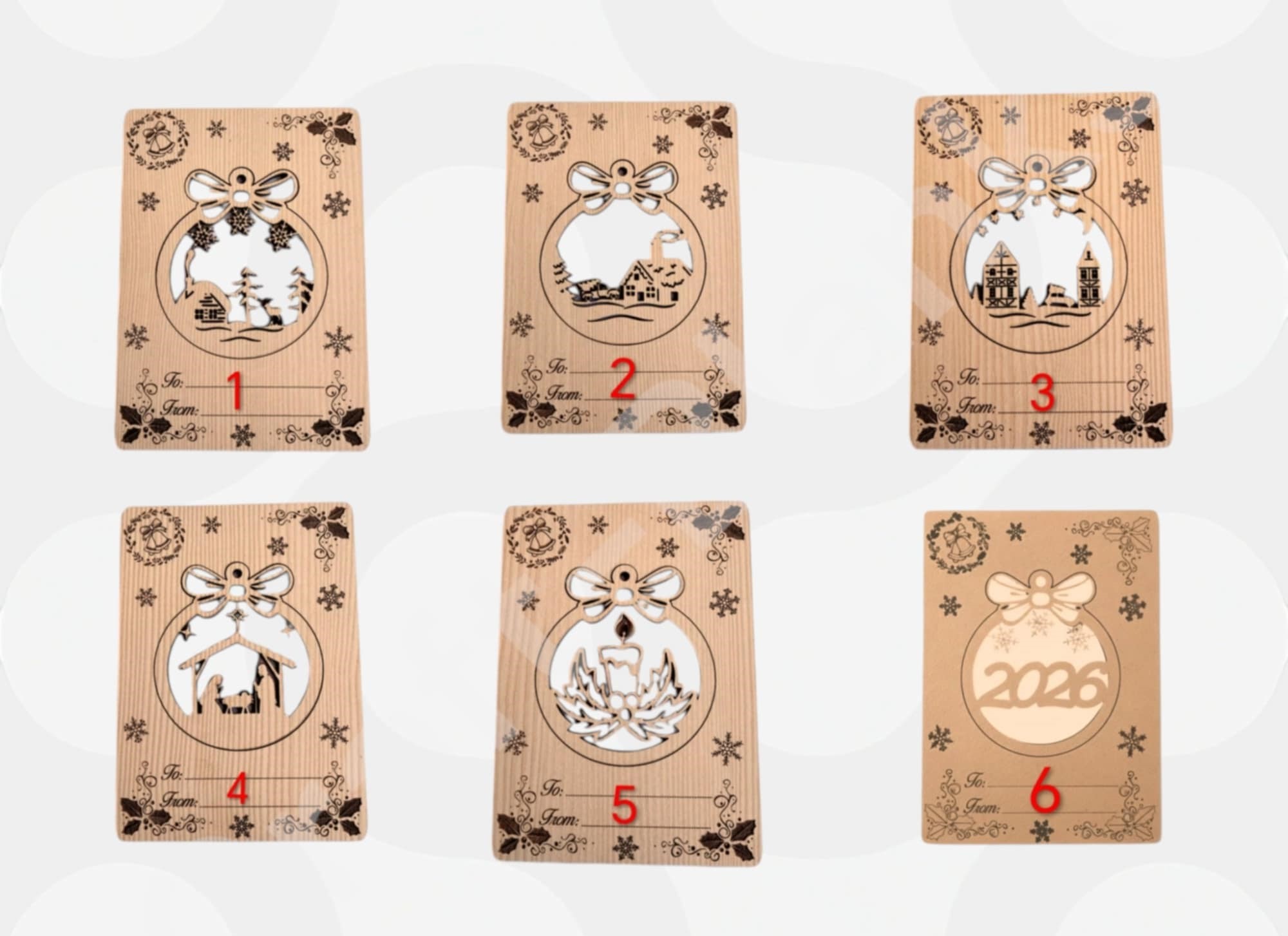 Variety is essential when building a successful product line for your craft shop. Specifically, we offer our MDF Christmas Bauble Card in six distinct variations to suit every style. You can select Design 1 featuring a stag in a forest, Design 2 showing a snowy cottage, or Design 3 with a detailed European village. Additionally, we provide a Nativity scene, a Candle wreath, and a special 2026 commemorative bauble. Consequently, you can pick a single favorite or collect the whole set to create a coordinated “changing seasons” display.