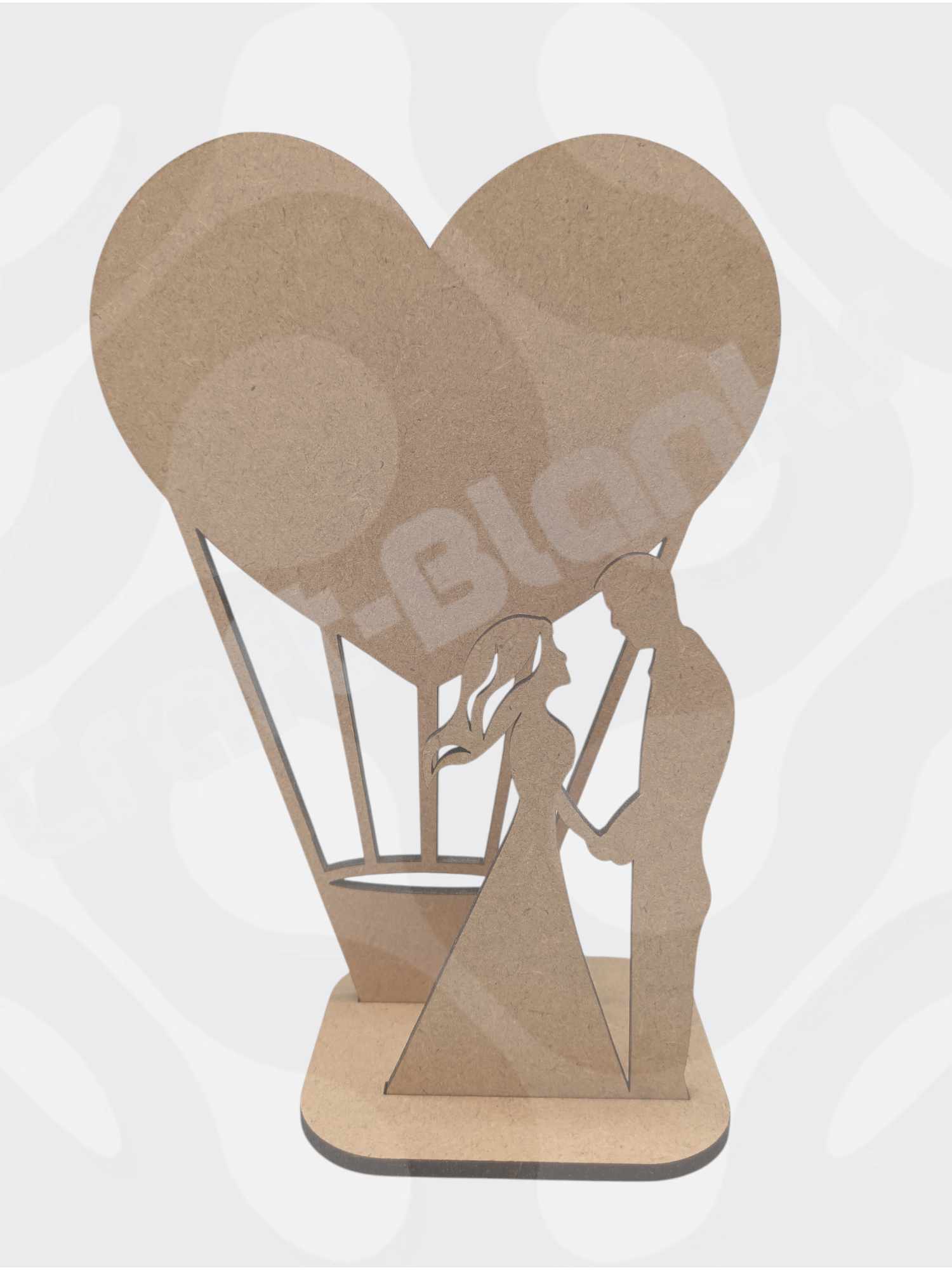 Celebrate a journey together with our MDF Couple Hot Air Balloon Blank. Specifically designed as a 3-piece freestanding kit, this 20cm high blank features a romantic couple silhouette and a large heart balloon, making it the perfect foundation for personalized wedding centerpieces and engagement gifts.