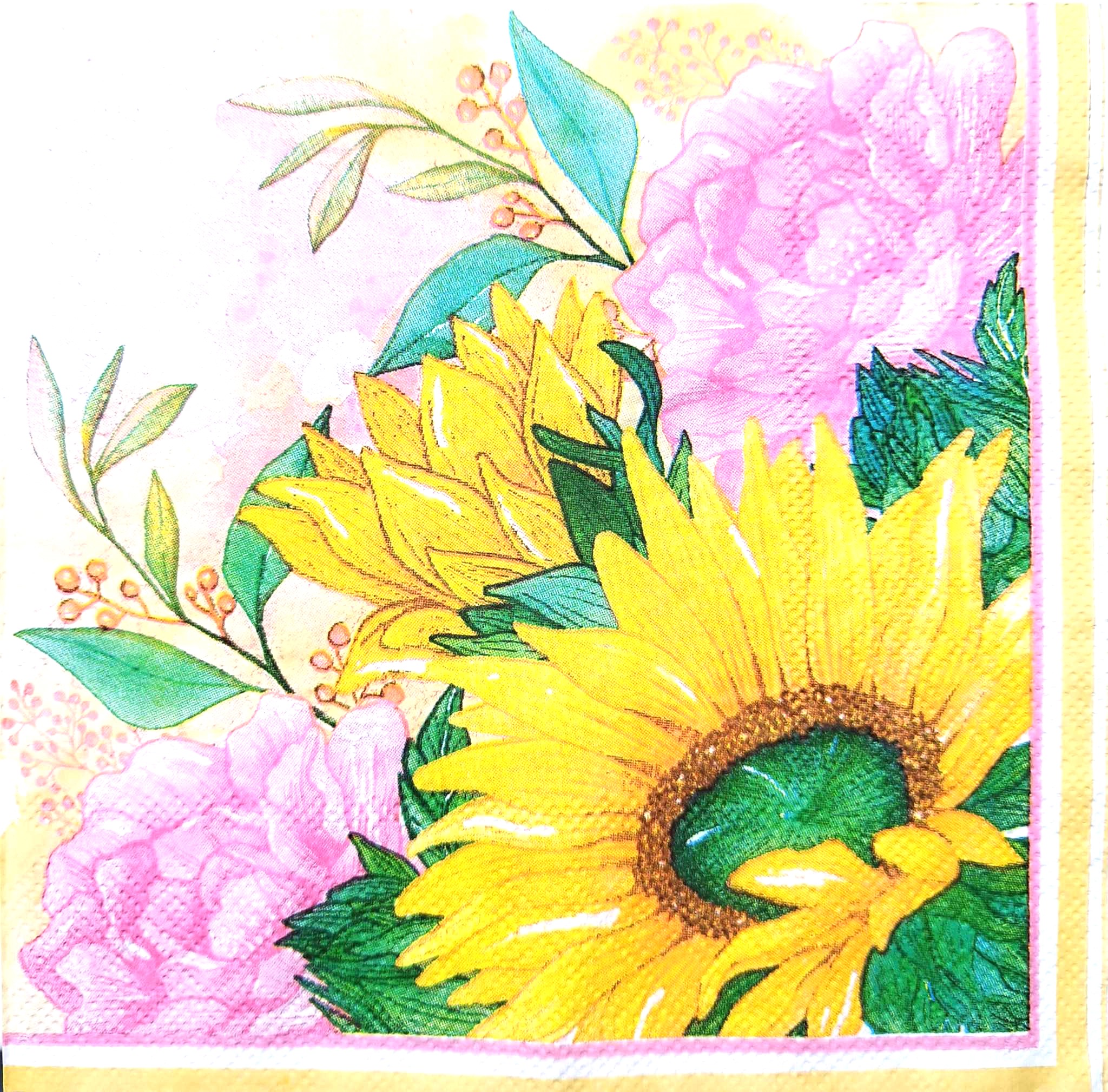 Sunflower and camellia napkins F25 33cm