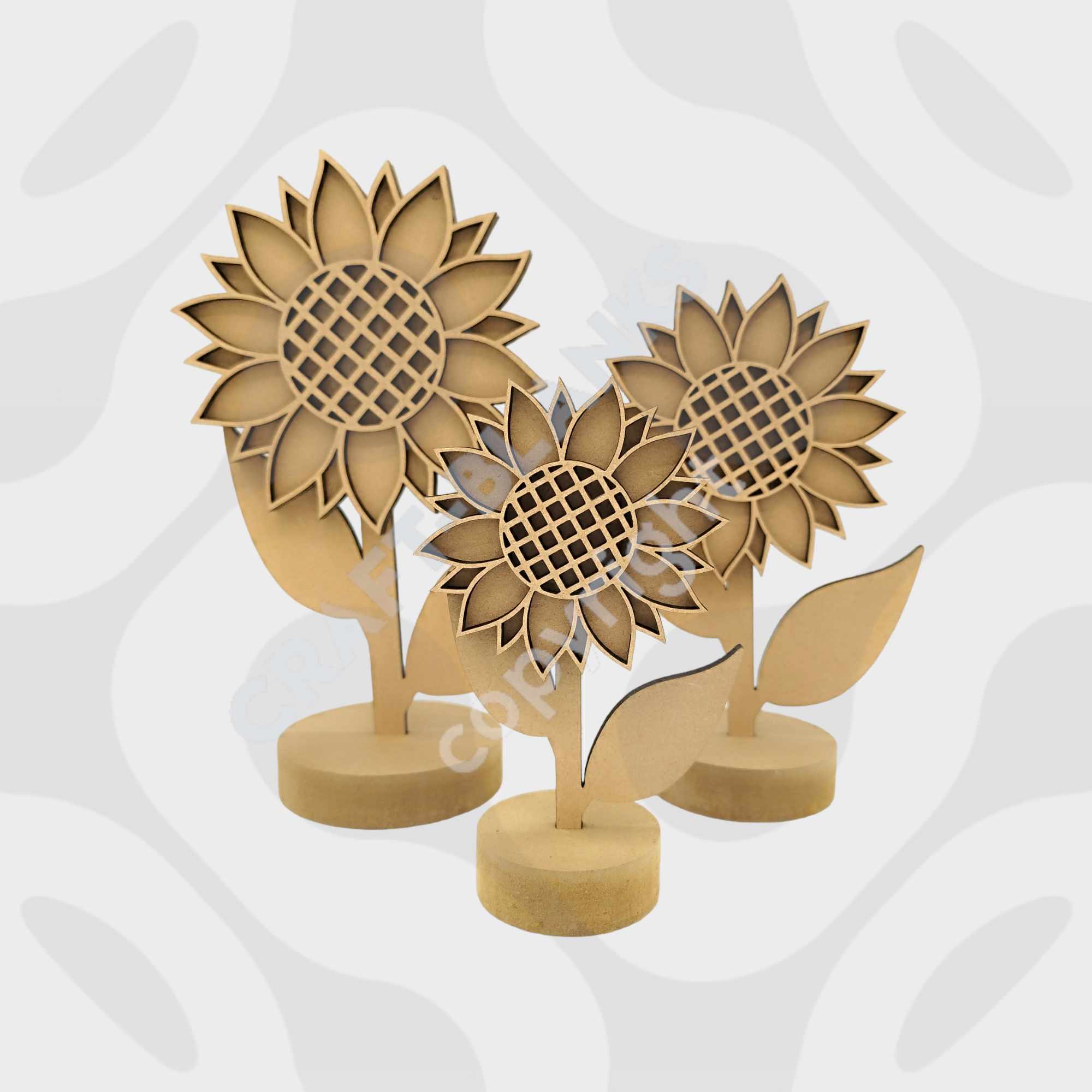 | Sunflowers on stands | 8cm sunflower, 10cm sunflower, 12.5cm Sunflower, set of 3 sizes |