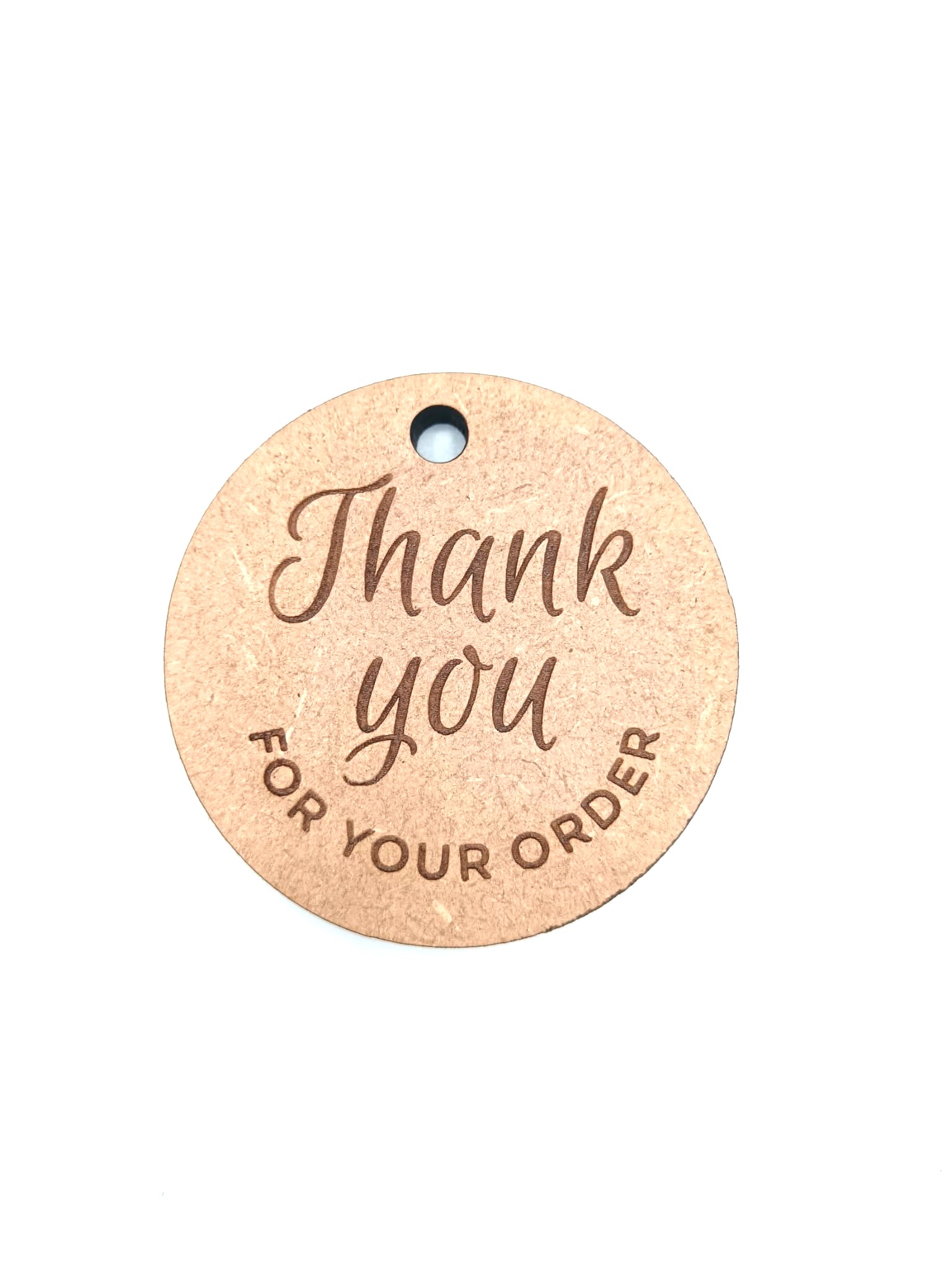 Elevate your brand presentation with this pack of 5 circular gift tags. Measuring 6.5cm x 6.5cm and crafted from sturdy 6mm thick MDF, each tag features a beautiful, deeply engraved message. These durable tags serve as the perfect finishing touch for orders, showing your customers exactly how much their support is appreciated.