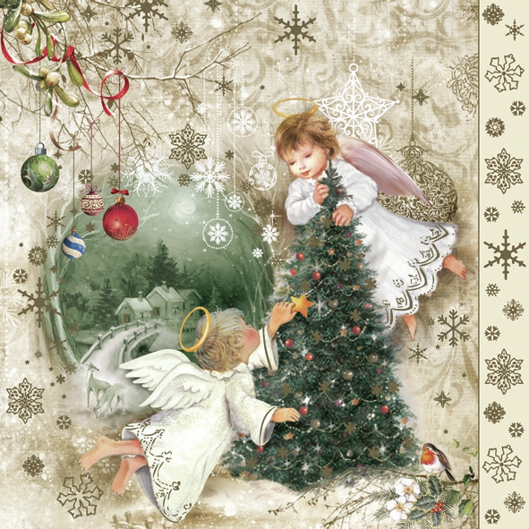 Two angels at christmas napkins 954 33cm