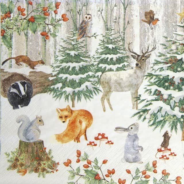Wildlife in Wintertime Napkins c C53 33cm